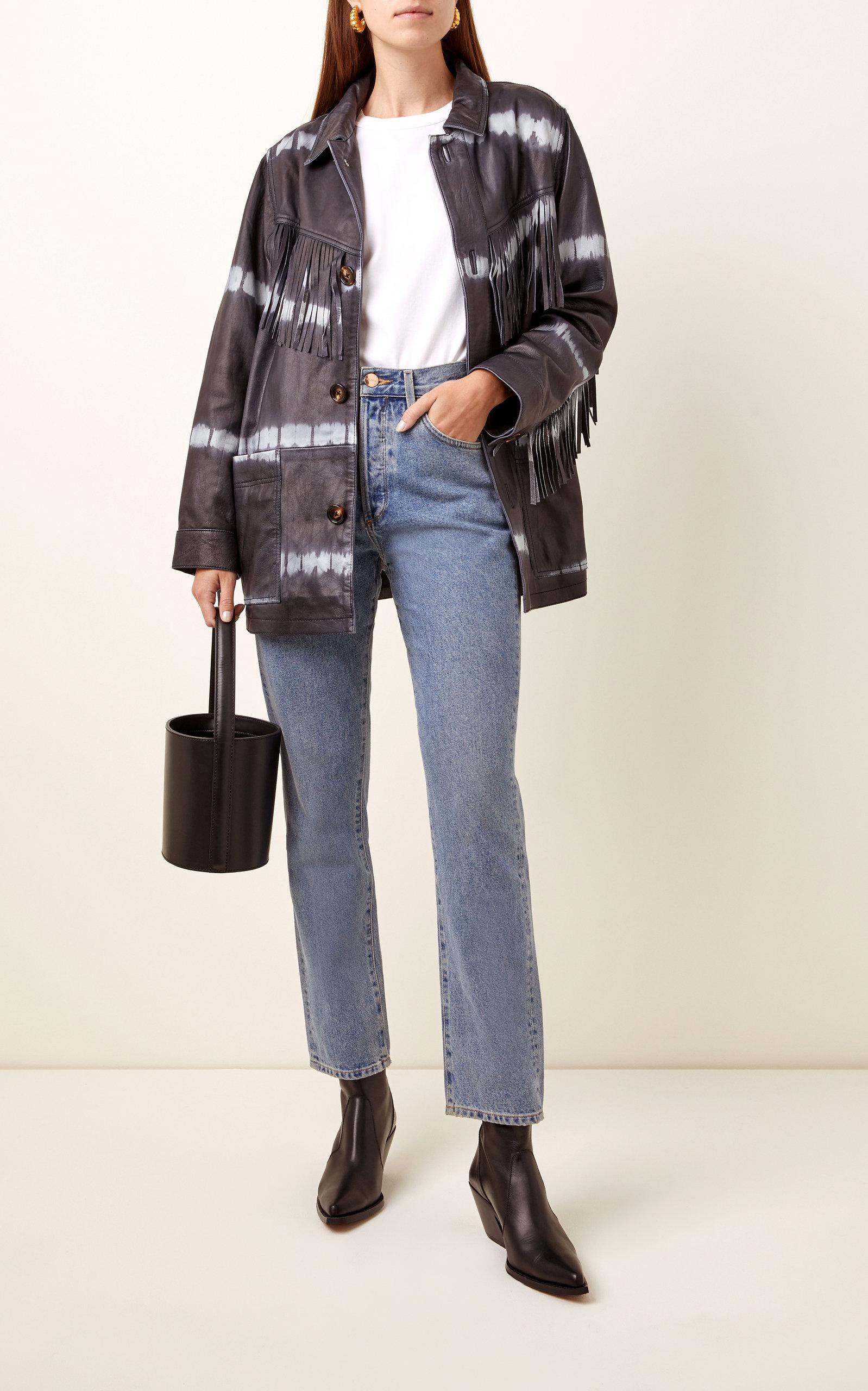Sea Fringed Tie Dyed Leather Jacket In Navy Blue Lyst