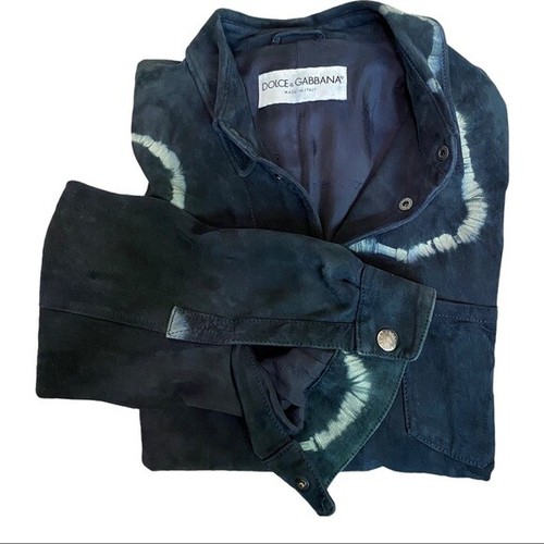 Dolce Gabanna Suede Leather Jacket Shacket Tie Dye Navy Blue Large Ebay